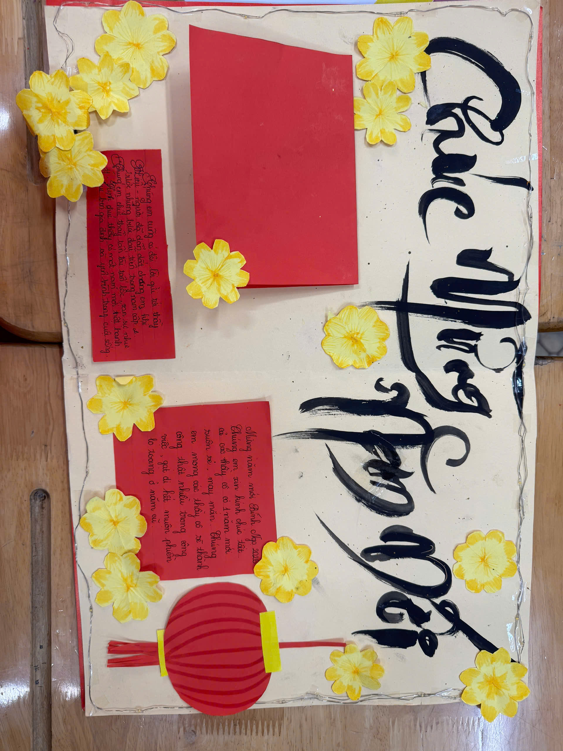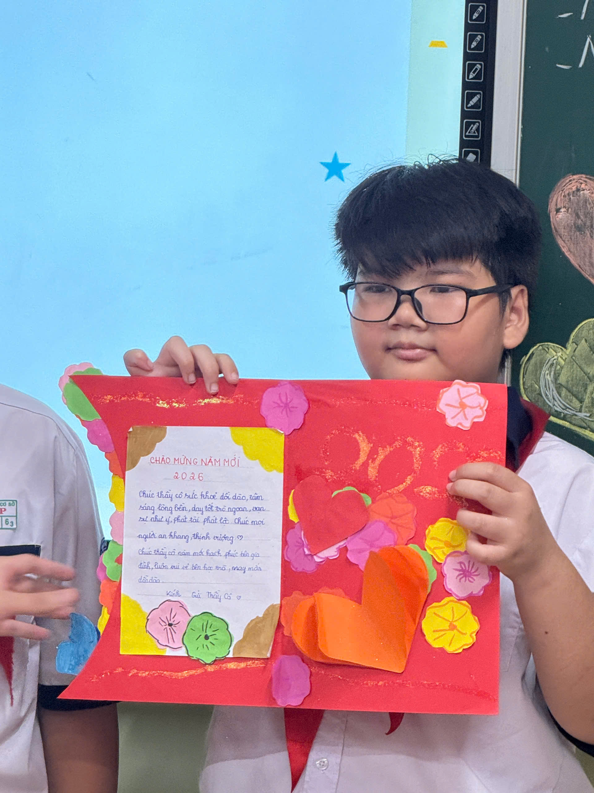Qua tiết học ''Ứng dụng tính đối xứng trong hình học'' học sinh sẽ ứng dụng kiến thức đã học vào thực tiễn làm những tấm thiệp ''Chúc mừng Năm mới''. ngoài ra đây cũng là dịp để học sinh thể hiện năng khiếu, tinh thần đoàn kết trong thực hiện nhiệm vụ.