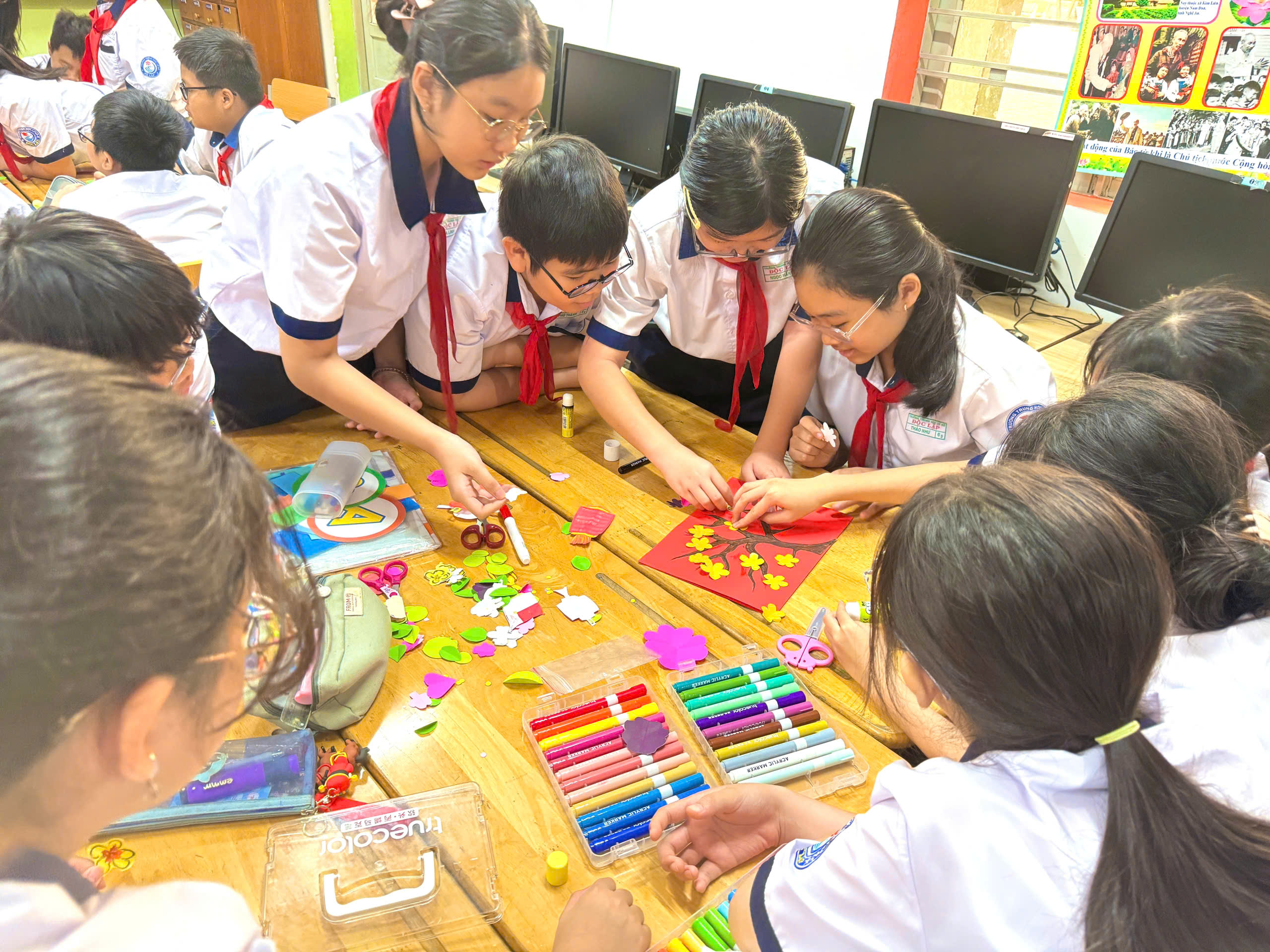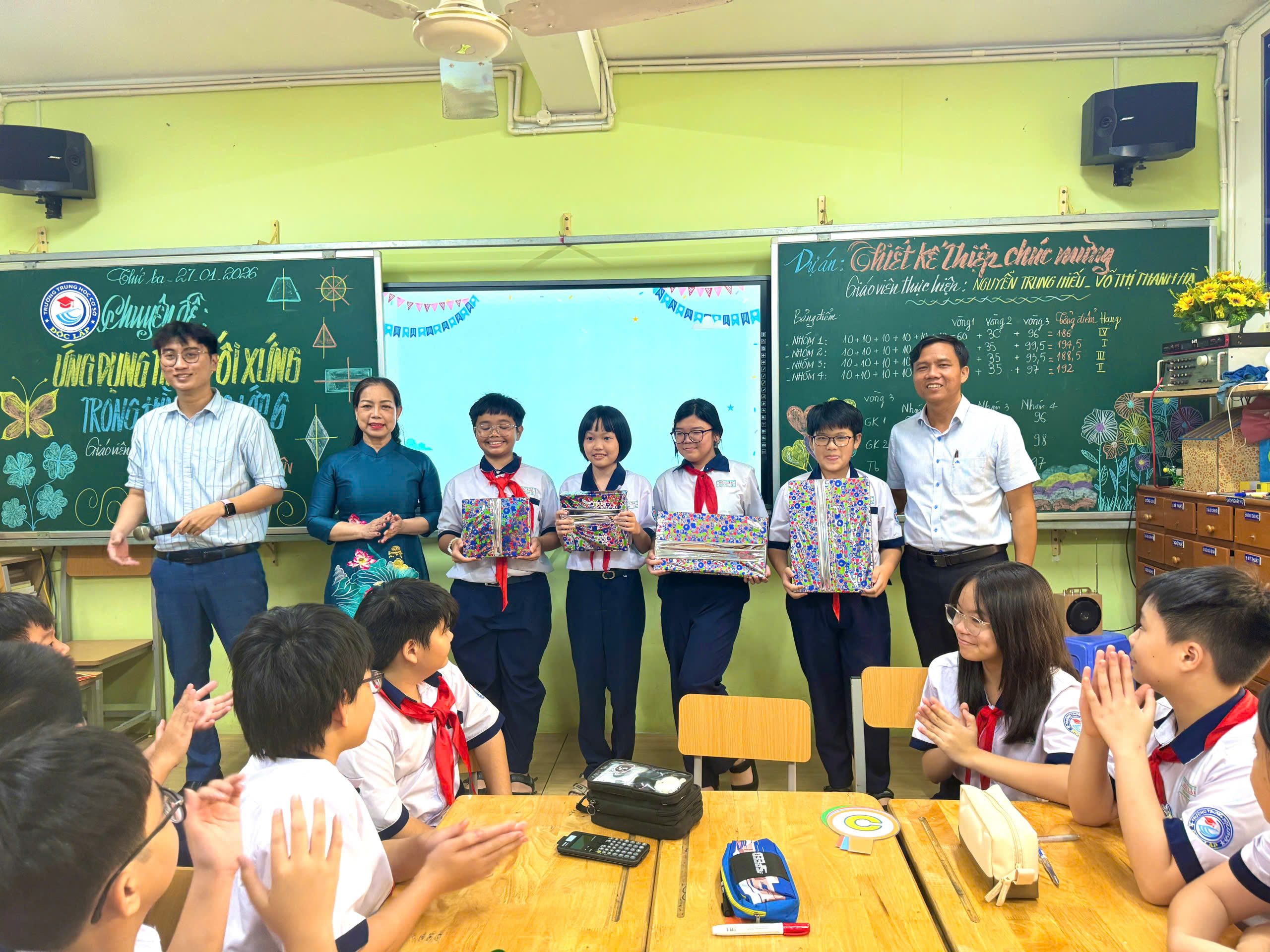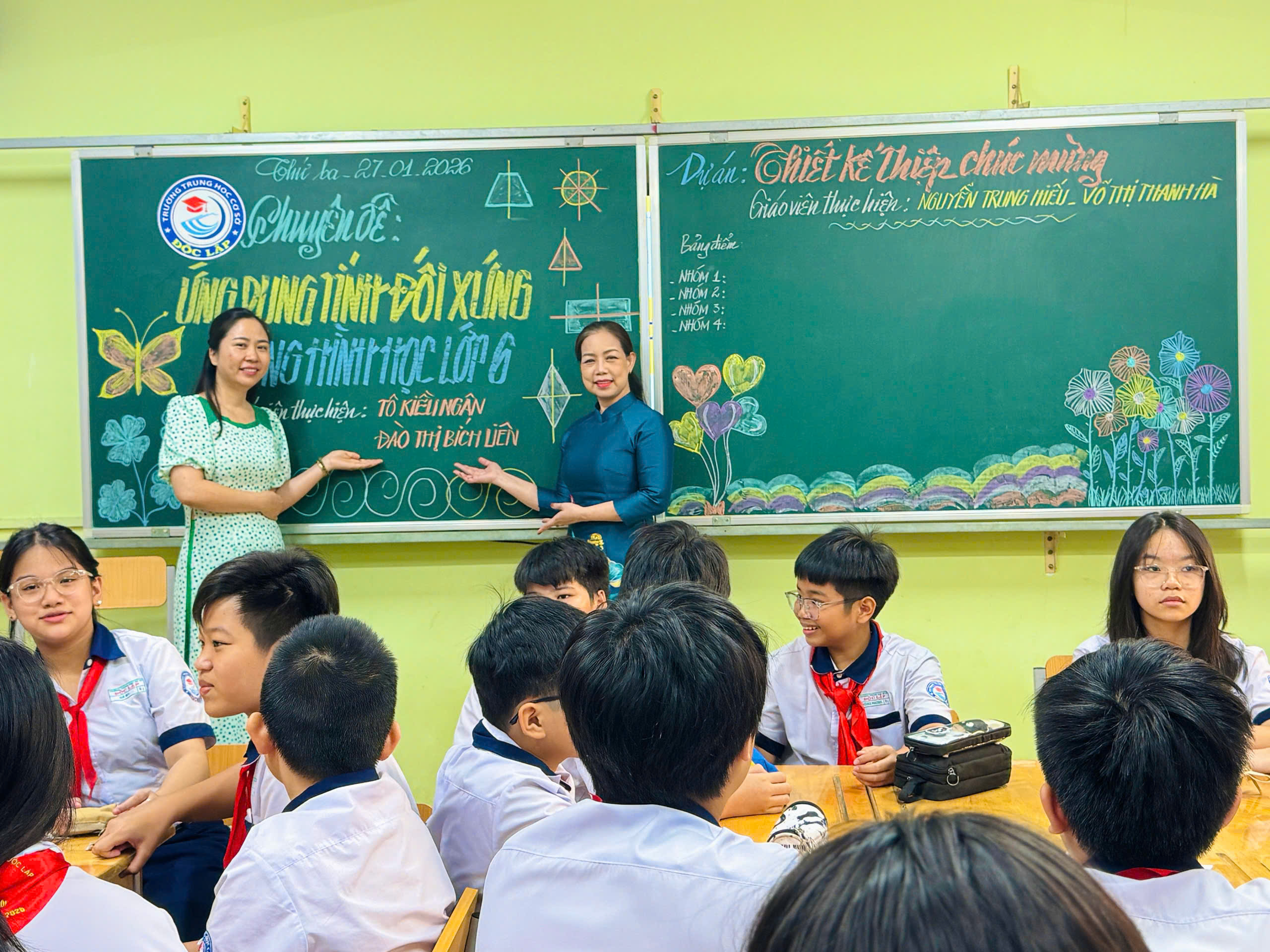 Nhóm Toán 6 thực hiện tiết Chuyên đề ''Ứng dụng tính đối xứng trong hình học lớp 6'' và tiết thao giảng '' Dự án thiết kế thiệp chúc mừng''
