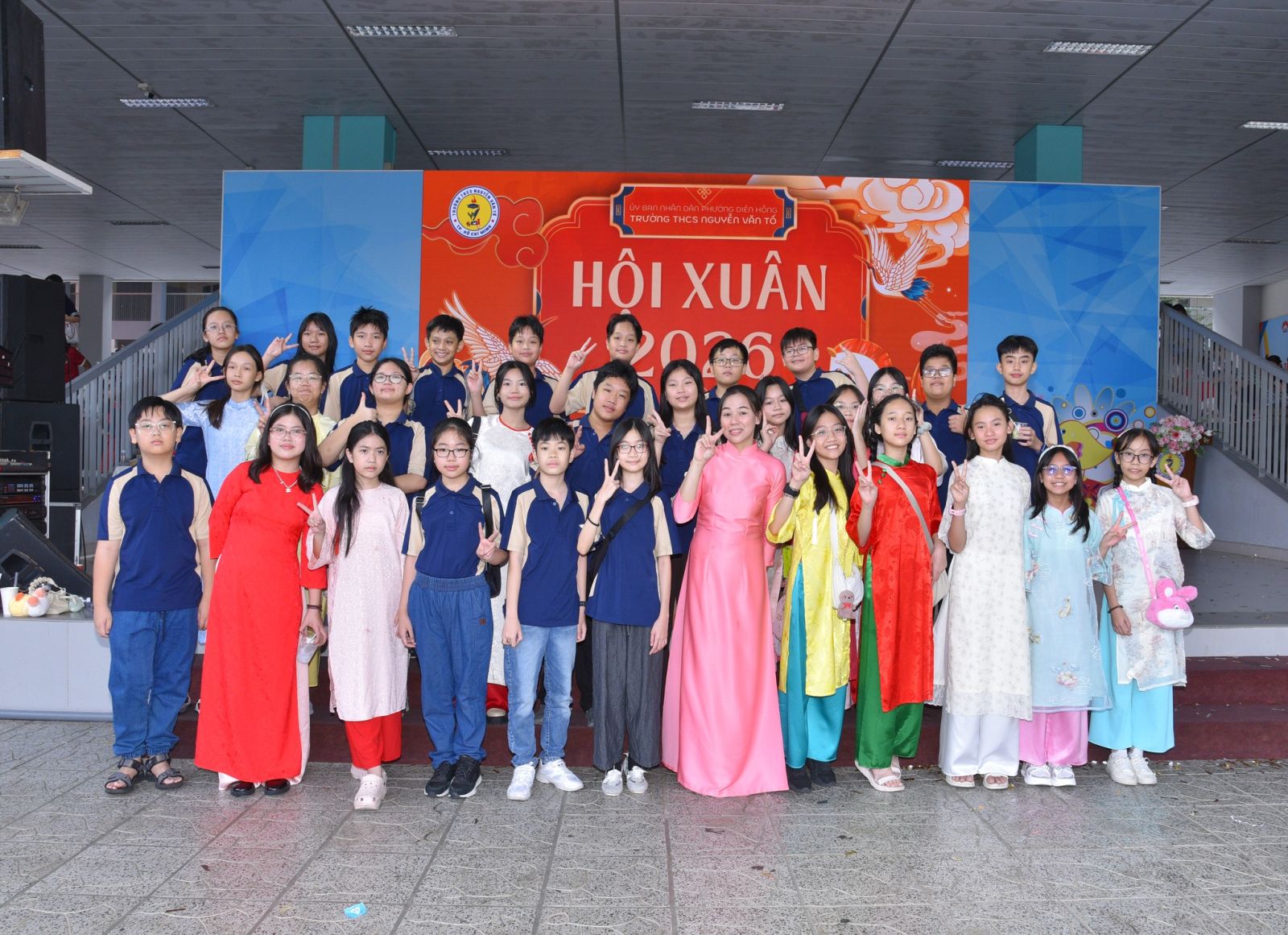 Không khí xuân đã thật sự lan tỏa khắp sân trường trong Hội Xuân 2026 với nhiều hoạt động sôi nổi, ý nghĩa và đậm đà bản sắc văn hóa Việt Nam. Từ các gian hàng ẩm thực, trò chơi dân gian, báo tường xuân về các vùng miền đến không gian triển lãm tranh mùa xuân Ba miền, mỗi góc nhỏ đều mang đến niềm vui, tiếng cười và sự háo hức của thầy cô, học sinh. Điểm nhấn đặc biệt của chương trình là phần trình diễn áo dài học sinh với vẻ đẹp thanh lịch, trẻ trung, góp phần tôn vinh giá trị truyền thống trong hơi thở hiện đại.
