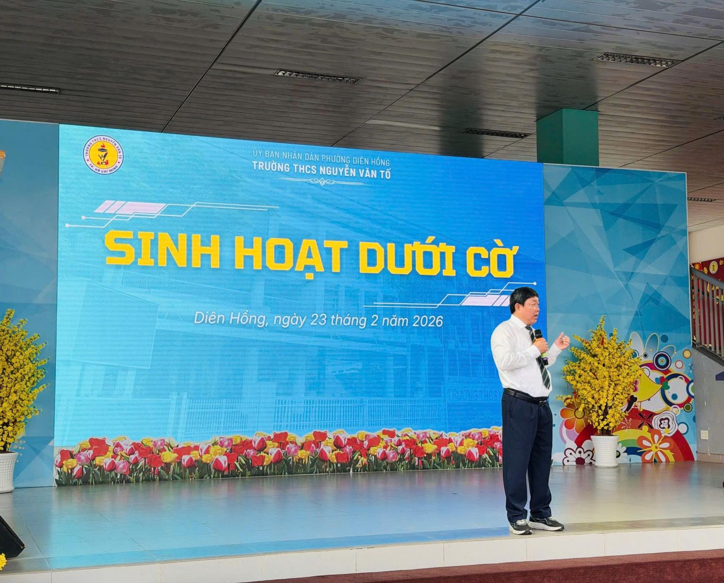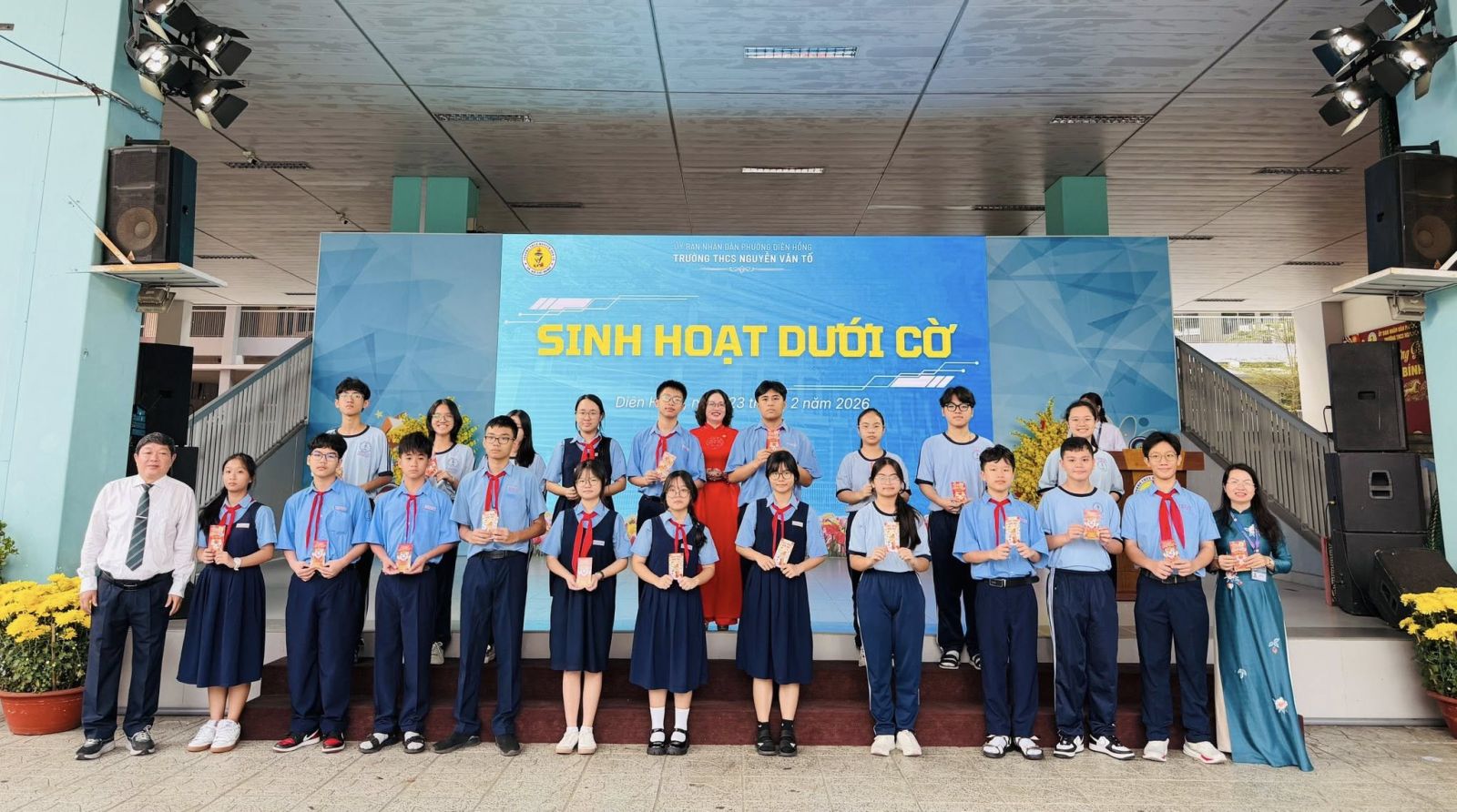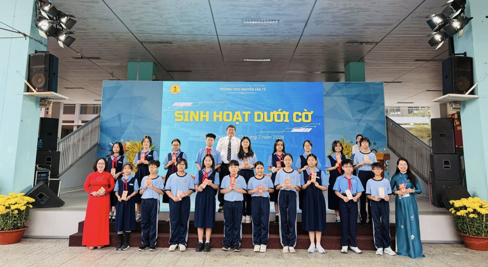 Trong buổi sinh hoạt dưới cờ đầu năm, Ban Giám hiệu nhà trường đã gửi những lời chúc tốt đẹp nhất đến toàn thể cán bộ, giáo viên, nhân viên và các em học sinh. Đặc biệt, 40 lớp đã nhận được những bao lì xì may mắn như lời chúc cho một năm mới thuận lợi, chăm ngoan, đoàn kết và đạt nhiều thành tích nổi bật.