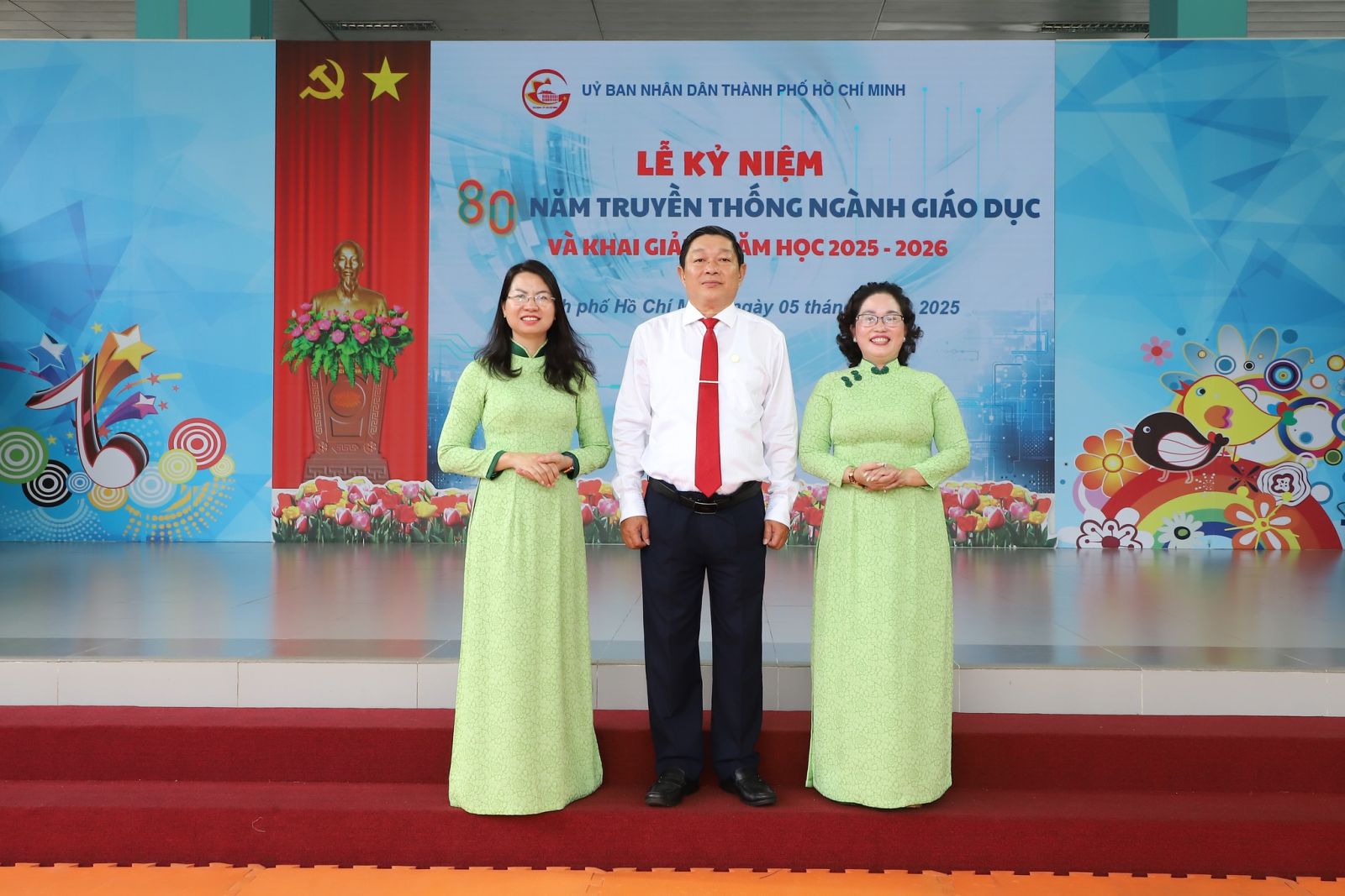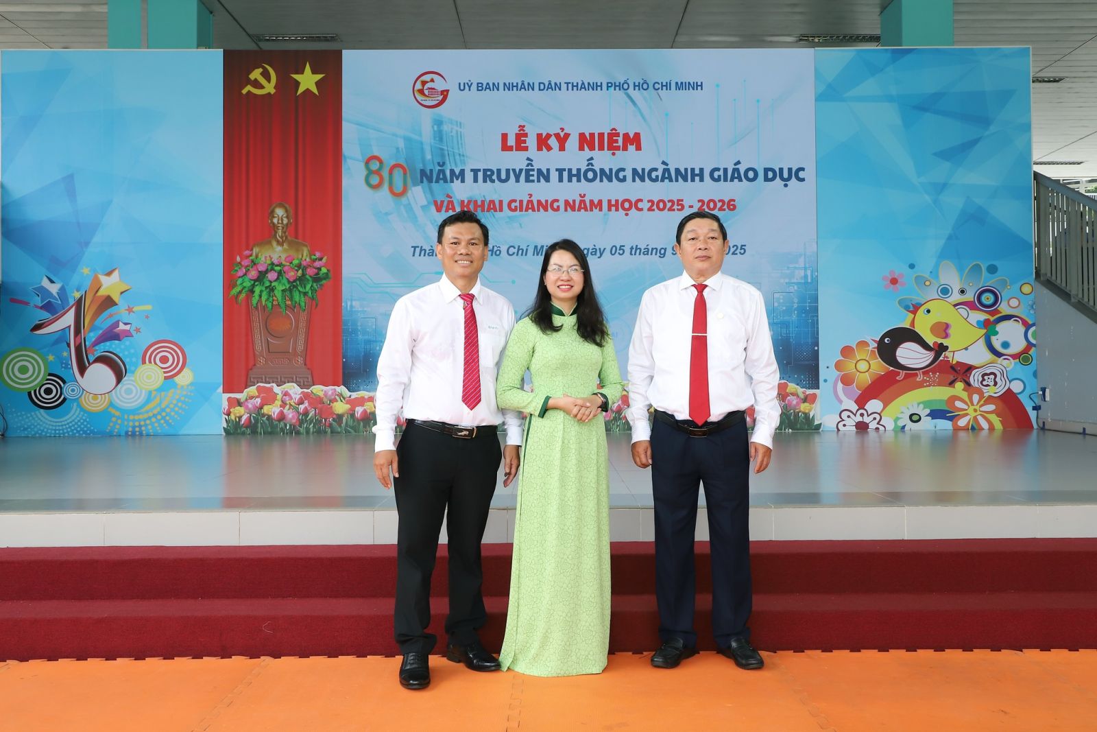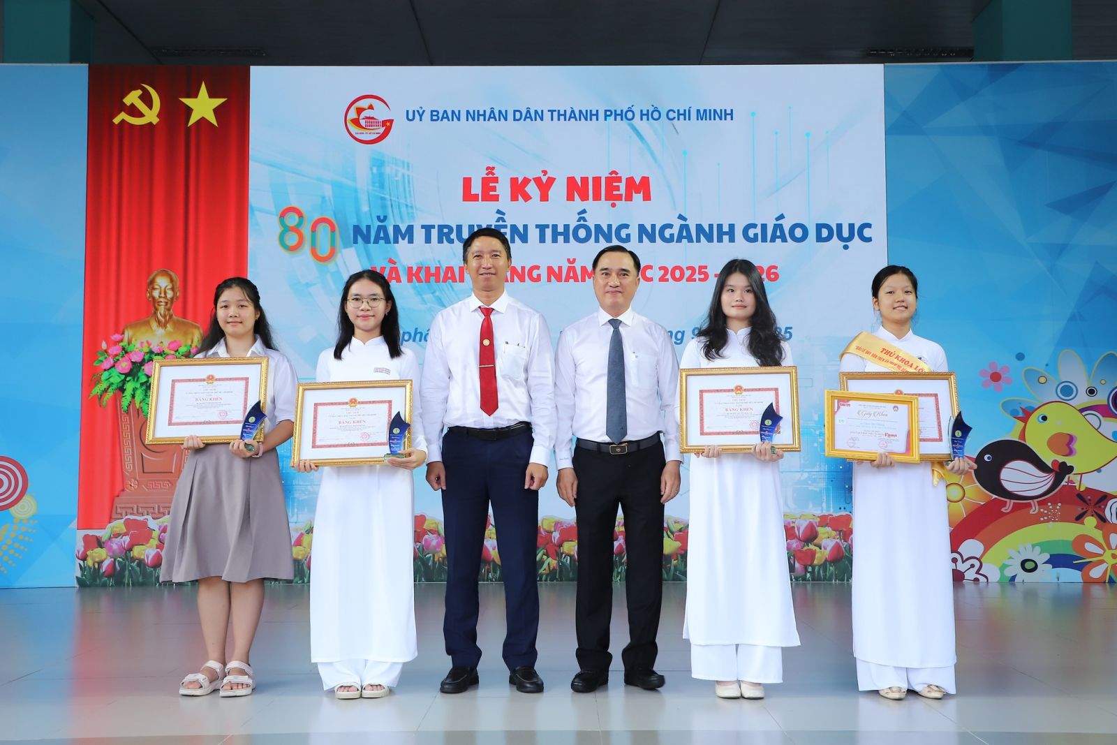Đặc biệt, trong buổi lễ trang trọng này, 4 học sinh xuất sắc của nhà trường đã vinh dự được Sở GD&ĐT TP.HCM trao tặng Bằng khen vì những thành tích rực rỡ tại kỳ thi Học sinh giỏi Thành phố năm học 2024 – 2025. Đây không chỉ là niềm tự hào của các em và gia đình, mà còn là minh chứng cho truyền thống hiếu học và chất lượng giáo dục của nhà trường.