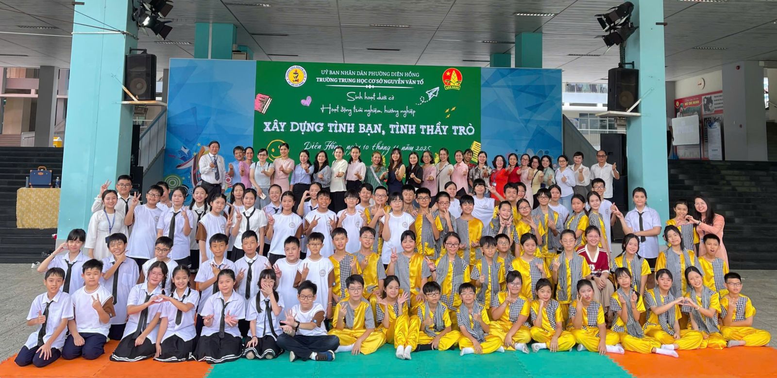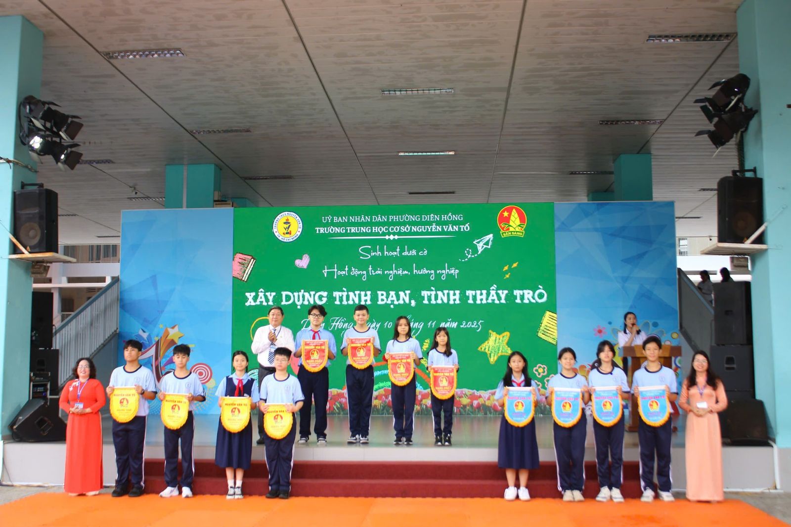 Sáng Thứ Hai, ngày 10/11/2025, sân trường Nguyễn Văn Tố rộn ràng trong không khí vui tươi khi các em học sinh lớp 6/3 và 6/4 mở đầu tuần mới bằng chương trình Sinh hoạt dưới cờ – Hoạt động trải nghiệm, hướng nghiệp với chủ đề đầy ý nghĩa: “Tình bạn – Tình thầy trò.”