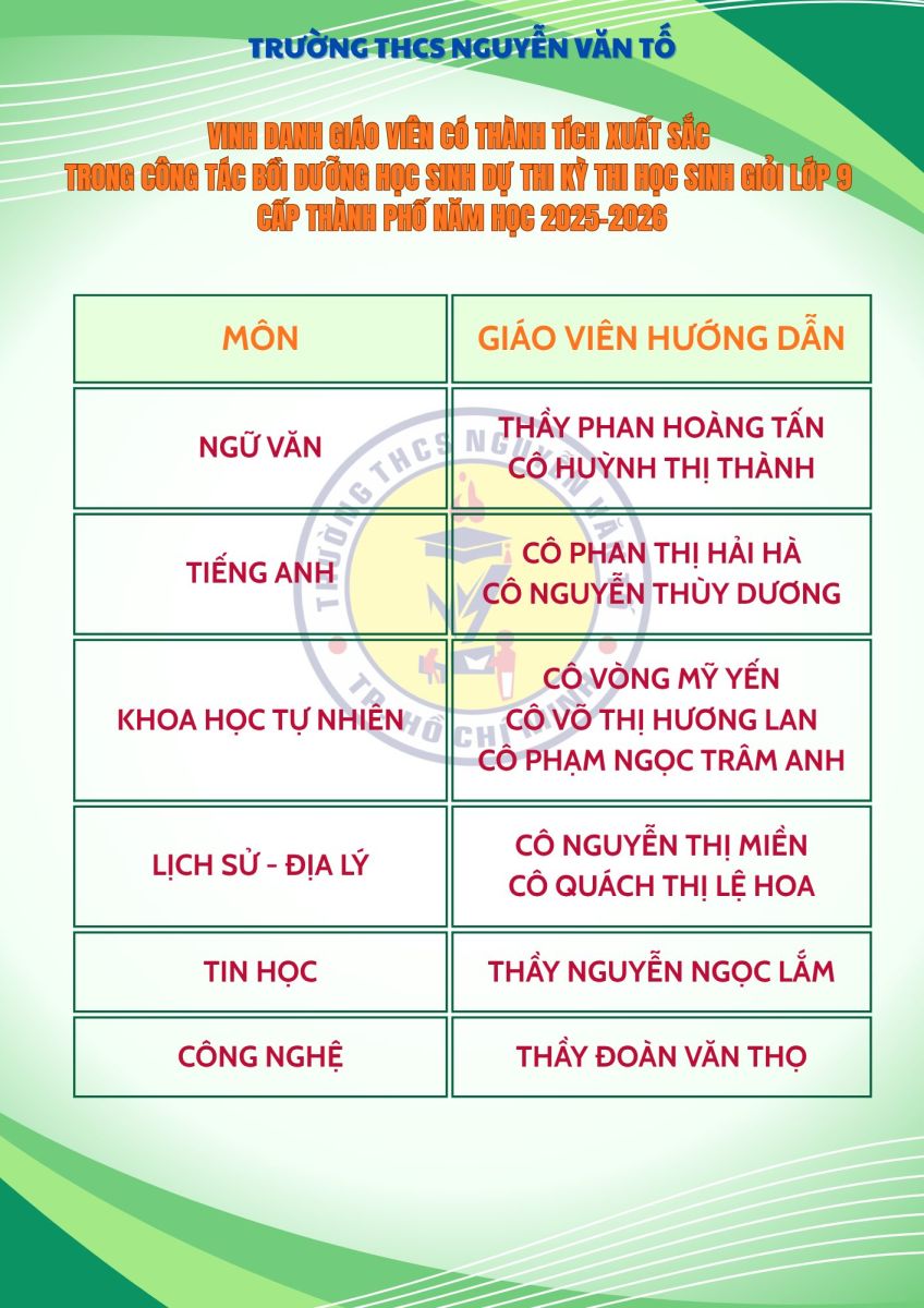 Vinh danh giáo viên và học sinh có thành tích xuất sắc trong Kỳ thi học sinh giỏi lớp 9 cấp Thành phố năm học 2025–2026.